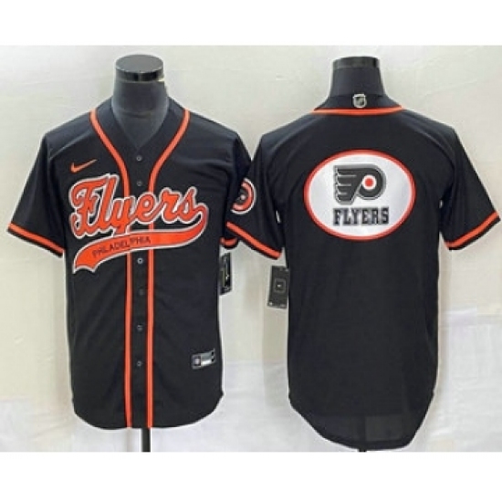 >Men's Nike Philadelphia Flyers Black Team Big Logo Cool Base Stitched Baseball Jersey