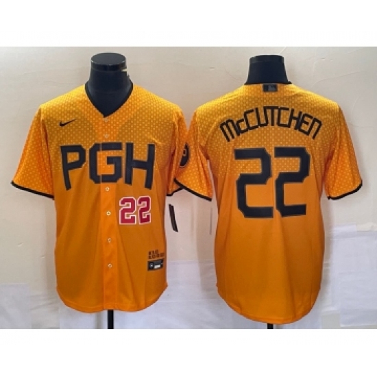 Men's Nike Pittsburgh Pirates #22 Andrew McCutchen Gold 2023 City Connect Stitched Jersey 1