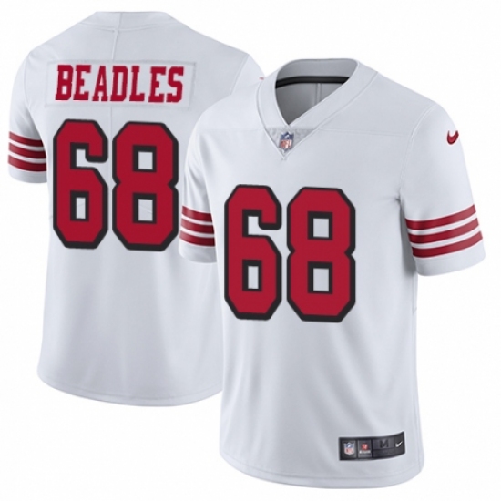 Men's Nike San Francisco 49ers #68 Zane Beadles White Vapor Untouchable Limited Player NFL Jersey