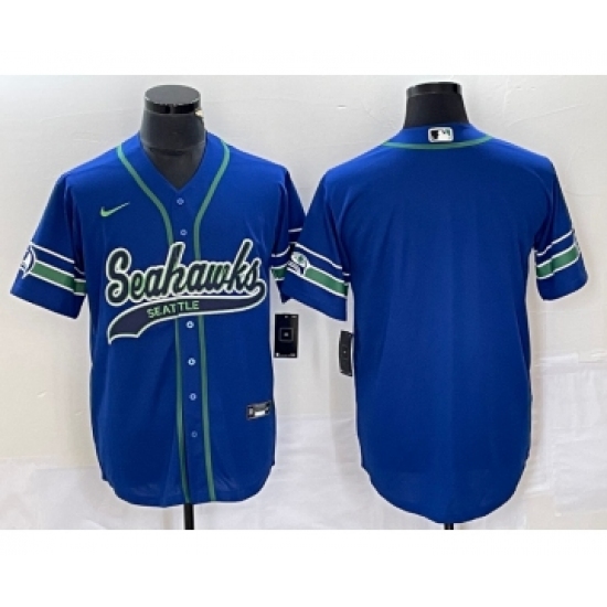 Men's Nike Seattle Seahawks Big Logo Blue Cool Base Stitched Baseball Jersey