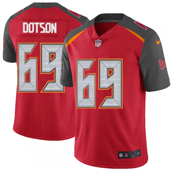 Home>NFL>Tampa Bay Buccaneers>Demar Dotson>Men's Nike Tampa Bay Buccaneers #69 Demar Dotson Red Team Color Vapor Untouchable Limited Player NFL Jersey