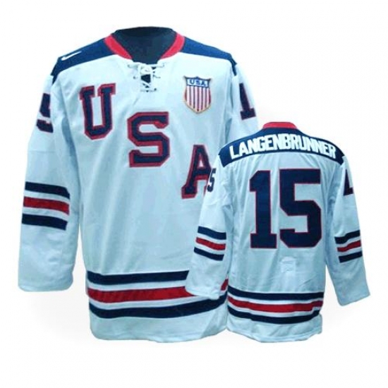 Home>NHL>Team USA>Jamie Langenbrunner>Men's Nike Team USA #15 Jamie Langenbrunner Authentic White 1960 Throwback Olympic Hockey Jersey