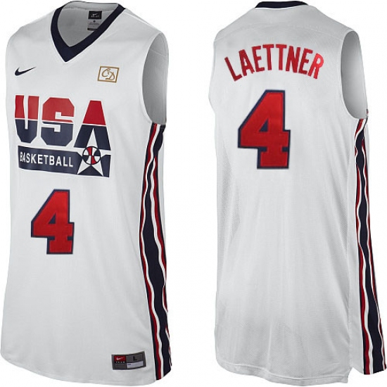 Men's Nike Team USA #4 Christian Laettner Swingman White 2012 Olympic Retro Basketball Jersey
