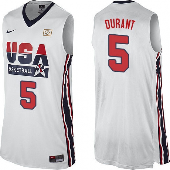 Home>NBA>Team USA>Kevin Durant>Men's Nike Team USA #5 Kevin Durant Authentic White 2012 Olympic Retro Basketball Jersey