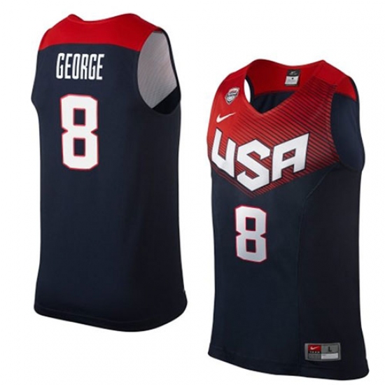 Men's Nike Team USA #8 Paul George Authentic Navy Blue 2014 Dream Team Basketball Jersey