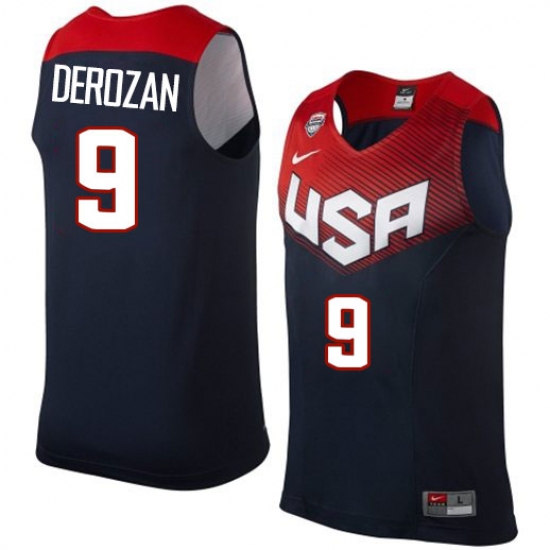 Men's Nike Team USA #9 DeMar DeRozan Authentic Navy Blue 2014 Dream Team Basketball Jersey
