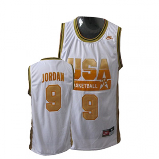Men's Nike Team USA #9 Michael Jordan Authentic Red Gold No. Basketball Jersey