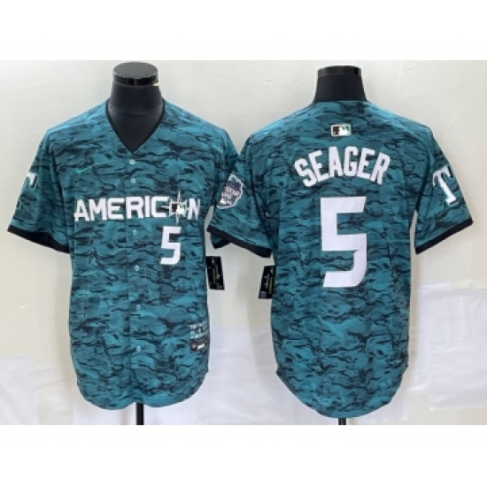 >Men's Nike Texas Rangers #5 Corey Seager Teal 2023 All Star Stitched Baseball Jersey
