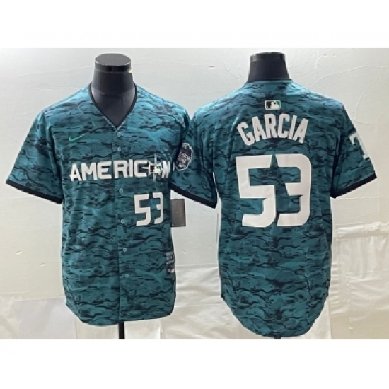 Men's Nike Texas Rangers #53 Adolis Garcia Number Teal 2023 All Star Stitched Baseball Jersey
