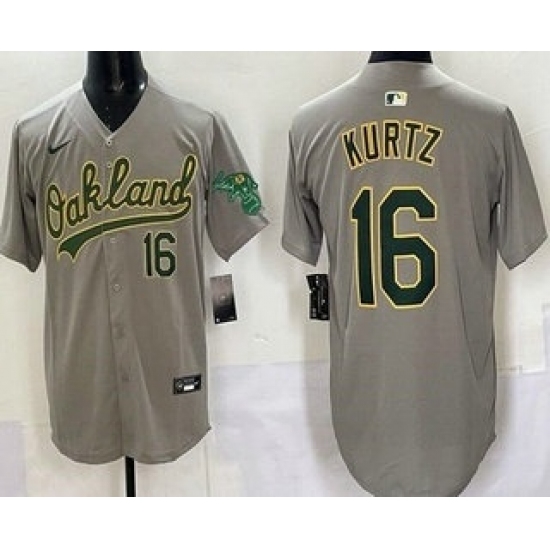 Men's Oakland Athletics #16 Nick Kurtz Gray 2024 Away Limited Stitched Jersey