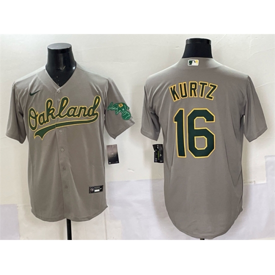 >Men's Oakland Athletics #16 Nick Kurtz Grey Cool Base Stitched Baseball Jersey