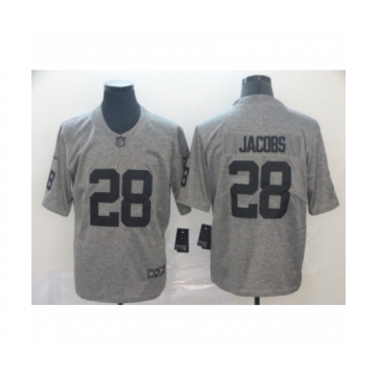 >Men's Oakland Raiders #28 Josh Jacobs Limited Gray Rush Gridiron Football Jersey