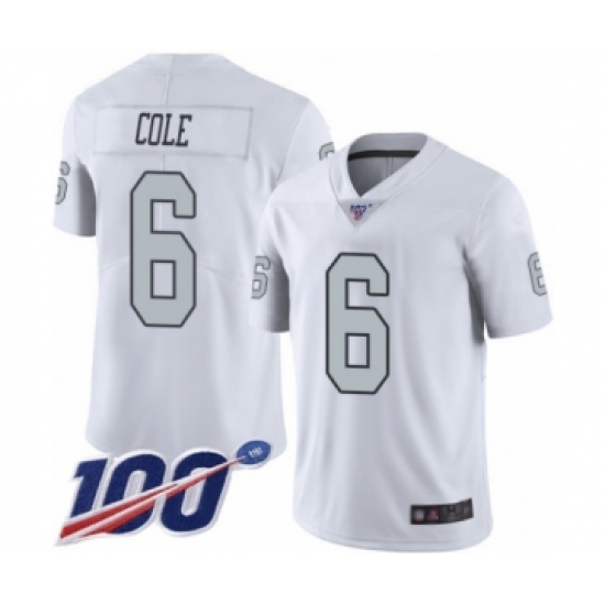 >Men's Oakland Raiders #6 A.J. Cole Limited White Rush Vapor Untouchable 100th Season Football Jersey