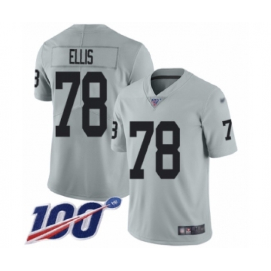 >Men's Oakland Raiders #78 Justin Ellis Limited Silver Inverted Legend 100th Season Football Jersey