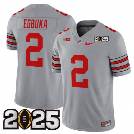 Men's Ohio State Buckeyes #2 Emeka Egbuka Grey 2025 CFP Final F.U.S.E. Vapor Limited Stitched Football Jersey