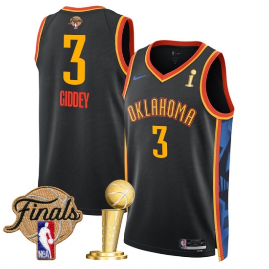>Men's Oklahoma City Thunder #3 Dillon Jones Black 2025 Finals And Finals Champions City Edition Stitched Basketball Jersey