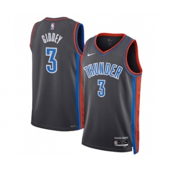 Men's Oklahoma City Thunder #3 Josh Giddey Gray Icon Edition Stitched Basketball Jersey