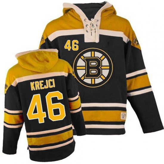 Home>NHL>Boston Bruins>David Krejci>Men's Old Time Hockey Boston Bruins #46 David Krejci Authentic Black Sawyer Hooded Sweatshirt NHL Jersey