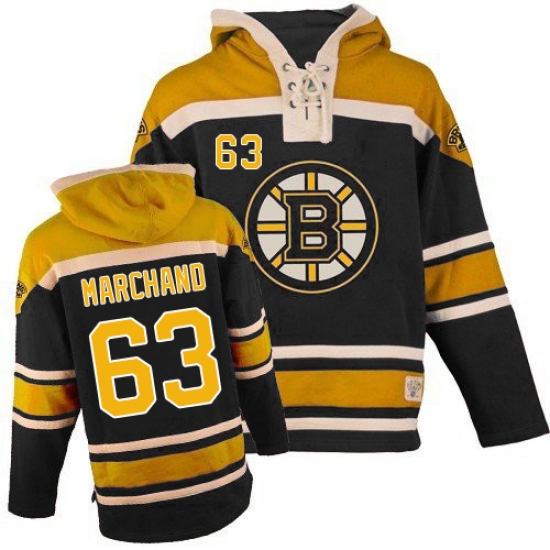 Men's Old Time Hockey Boston Bruins #63 Brad Marchand Authentic Black Sawyer Hooded Sweatshirt NHL Jersey