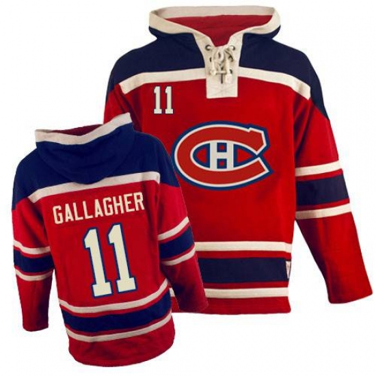 Home>NHL>Montreal Canadiens>Brendan Gallagher>Men's Old Time Hockey Montreal Canadiens #11 Brendan Gallagher Authentic Red Sawyer Hooded Sweatshirt NHL Jersey