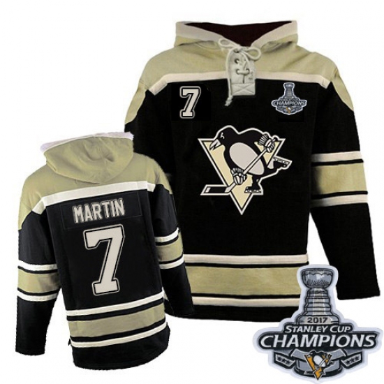 Home>NHL>Pittsburgh Penguins>Paul Martin>Men's Old Time Hockey Pittsburgh Penguins #7 Paul Martin Authentic Black Sawyer Hooded Sweatshirt 2017 Stanley Cup Champions