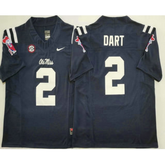 Men's Ole Miss Rebels #2 Jaxson Dart Navy Blue FUSE College Football Jersey