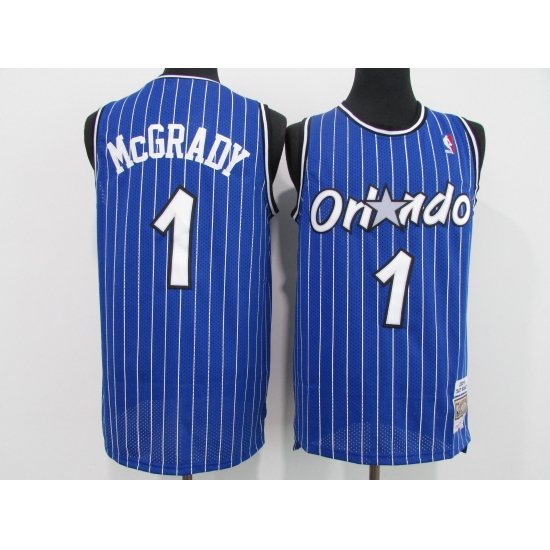 Men's Orlando Magic #1 Tracy Mcgrady Blue Mitchell & Ness Black Retired Player Jersey