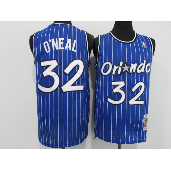 Men's Orlando Magic #32 Shaquille O'Neal Blue Mitchell & Ness Black Retired Player Jersey