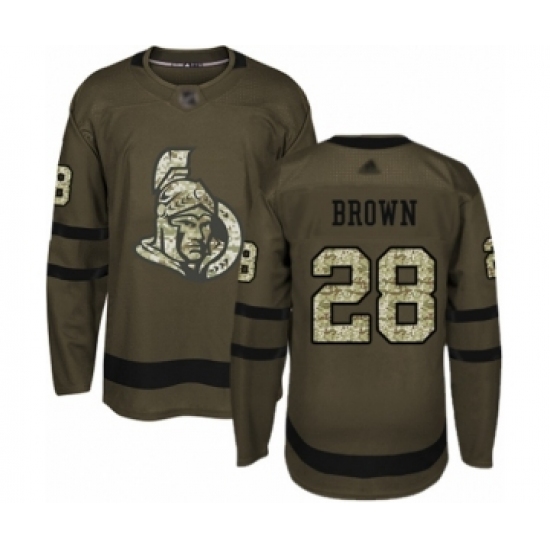 >Men's Ottawa Senators #28 Connor Brown Authentic Green Salute to Service Hockey Jersey