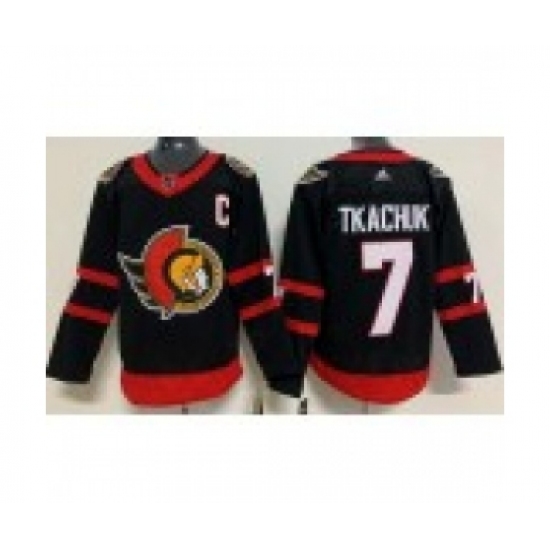Men's Ottawa Senators #7 Brady Tkachuk Black With C Patch Authentic Jersey