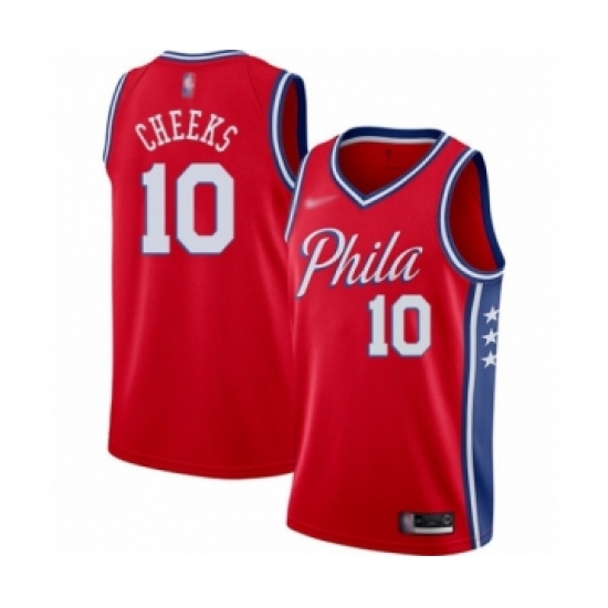 >Men's Philadelphia 76ers #10 Maurice Cheeks Authentic Red Finished Basketball Jersey - Statement Edition