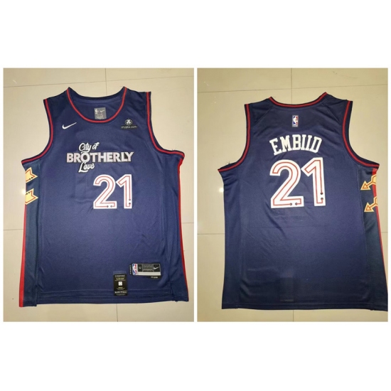 Men's Philadelphia 76ers #21 Joel Embiid Navy 2021-22 City Ediition Stitched Basketball Jersey