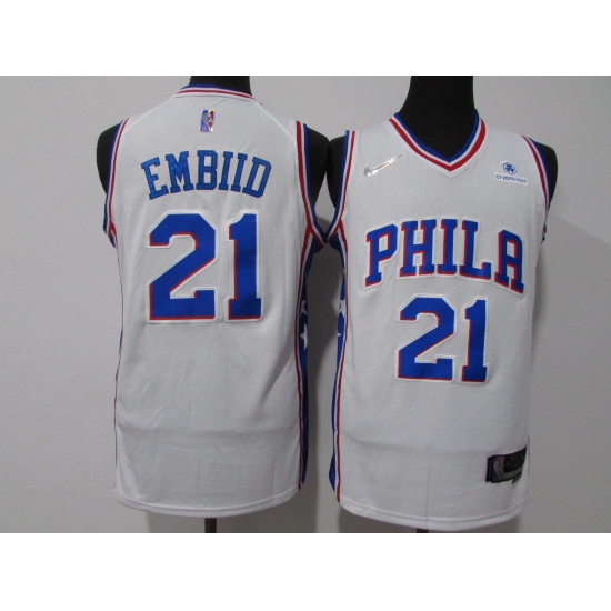 Men's Philadelphia 76ers #21 Joel Embiid White 2024-25 City Edition Stitched Jersey