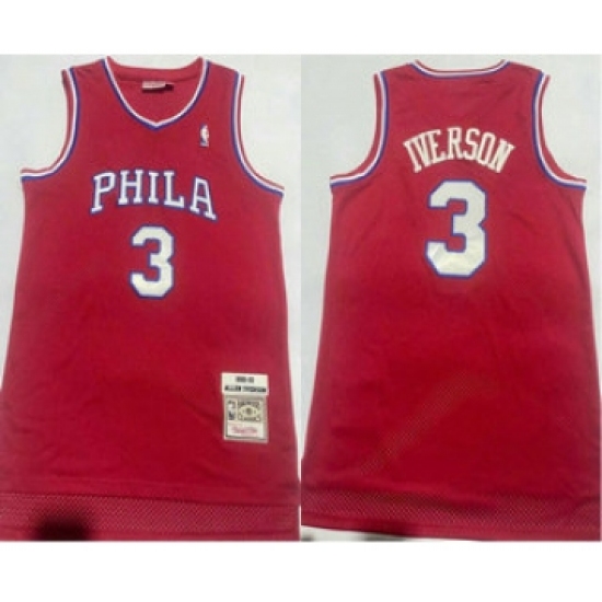 Men's Philadelphia 76ers #3 Allen Iverson 2002-03 Red Hardwood Classics Soul Swingman Throwback Jersey