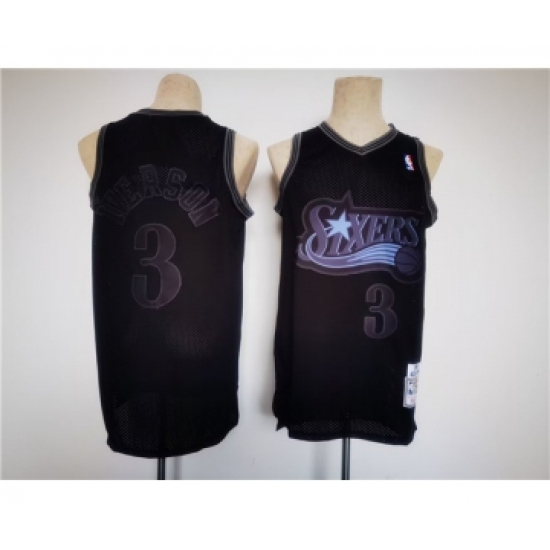 >Men's Philadelphia 76ers #3 Allen Iverson Black Throwback basketball Jersey
