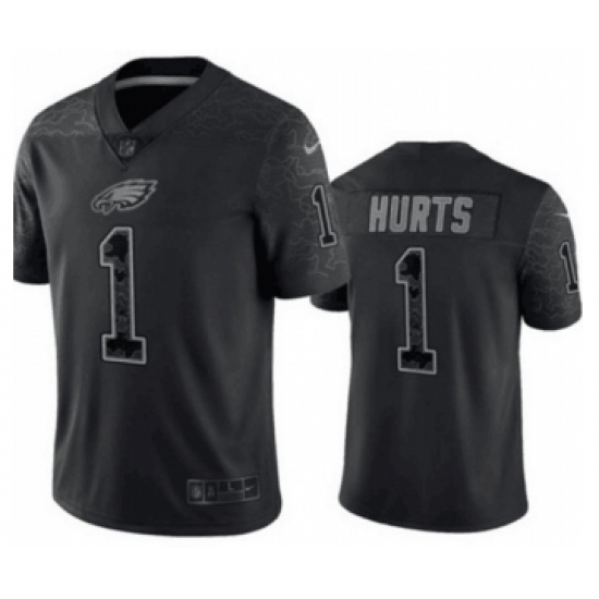 Men's Philadelphia Eagles #1 Jalen Hurts Black Reflective Limited Stitched Football Jersey