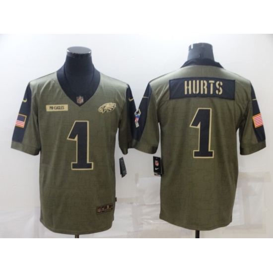 Men's Philadelphia Eagles #1 Jalen Hurts Nike Olive 2021 Salute To Service Limited Player Jersey