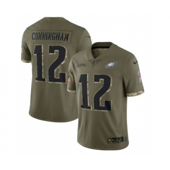 >Men's Philadelphia Eagles #12 Randall Cunningham 2022 Olive Salute To Service Limited Stitched Jersey