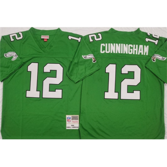 >Men's Philadelphia Eagles #12 Randall Cunningham Kelly Green Throwback Football Stitched Jersey