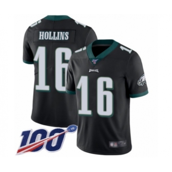 >Men's Philadelphia Eagles #16 Mack Hollins Black Alternate Vapor Untouchable Limited Player 100th Season Football Jersey