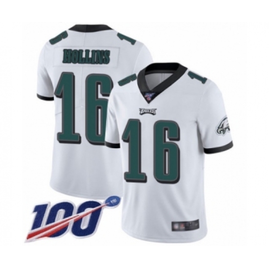 >Men's Philadelphia Eagles #16 Mack Hollins White Vapor Untouchable Limited Player 100th Season Football Jersey