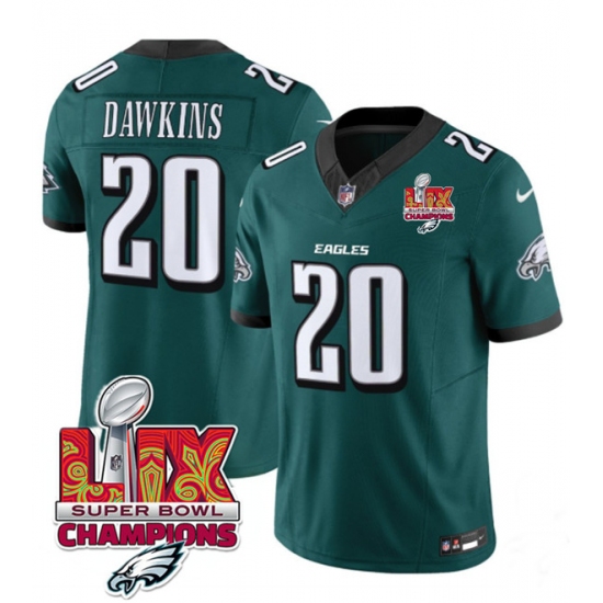 Men's Philadelphia Eagles #20 Brian Dawkins Green 2025 Eagles Logo Super Bowl LIX New F.U.S.E. Vapor Limited Football Stitched Jersey