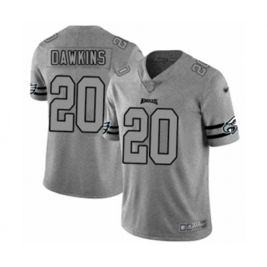 >Men's Philadelphia Eagles #20 Brian Dawkins Limited Gray Team Logo Gridiron Football Jersey