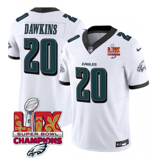 Men's Philadelphia Eagles #20 Brian Dawkins White 2025 Eagles Logo Super Bowl LIX New F.U.S.E. Vapor Untouchable Limited Football Stitched Jersey