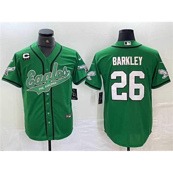Men's Philadelphia Eagles #26 Saquon Barkley Green With 3-star C Cool Base Baseball Stitched Jersey