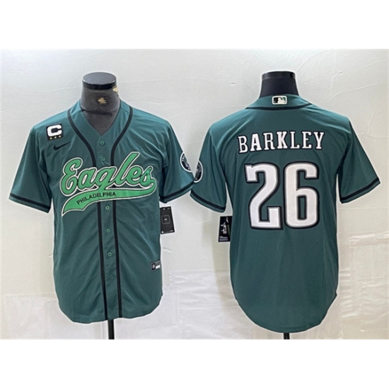 Men's Philadelphia Eagles #26 Saquon Barkley Green With 3-star C Cool Base Baseball Stitched Jerseys
