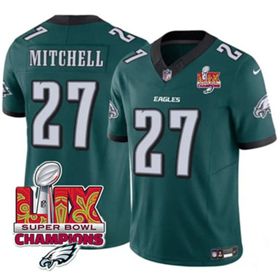 Men's Philadelphia Eagles #27 Quinyon Mitchell Green 2025 Eagles Logo Super Bowl LIX New F.U.S.E. Vapor Untouchable Limited Football Stitched Jersey