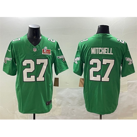 Men's Philadelphia Eagles Quinyon Mitchell #27 Green 2024 2025 Super Bowl LIX F U S E Stitched NFL Jersey