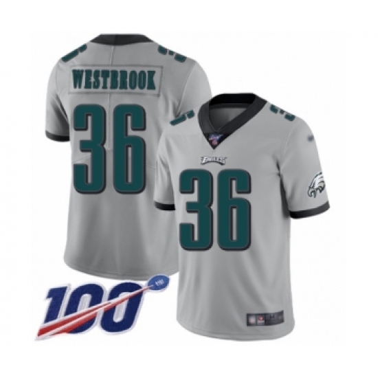 >Men's Philadelphia Eagles #36 Brian Westbrook Limited Silver Inverted Legend 100th Season Football Jersey