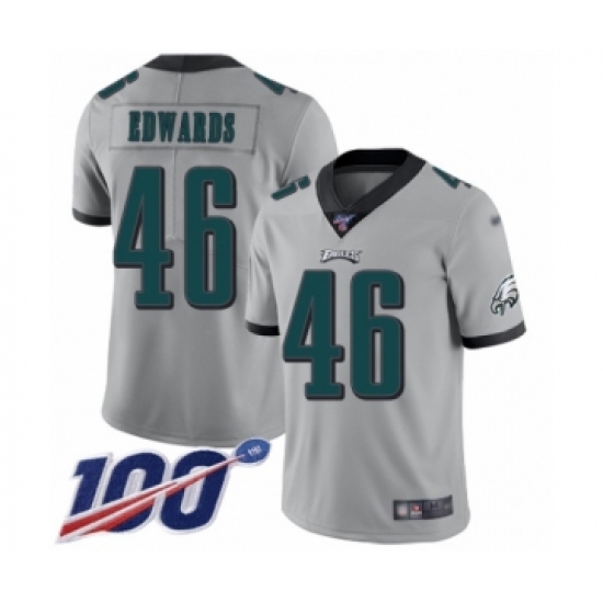 >Men's Philadelphia Eagles #46 Herman Edwards Limited Silver Inverted Legend 100th Season Football Jersey